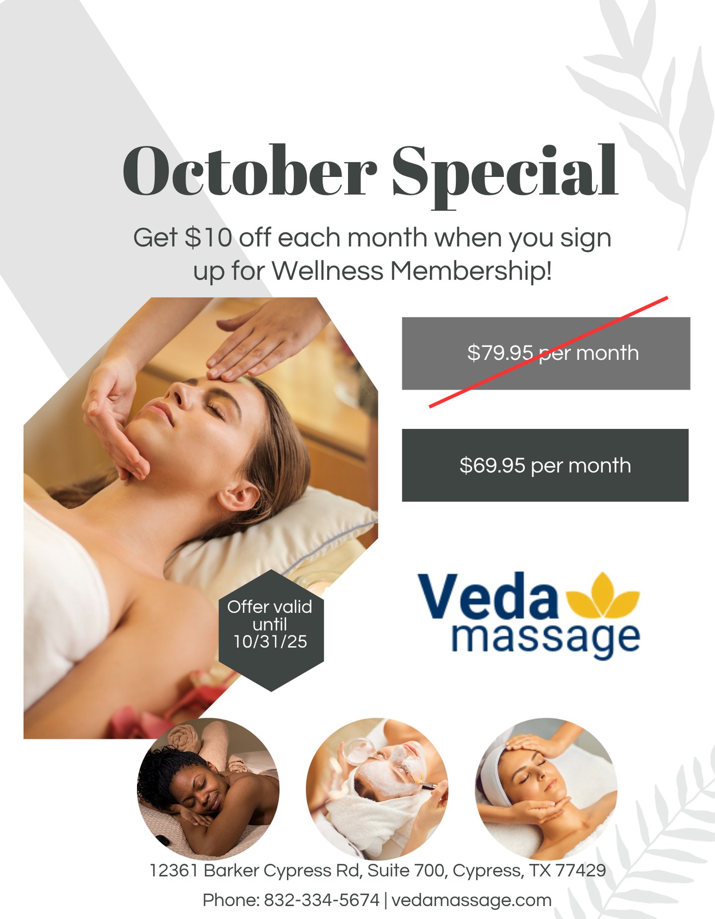 Invest in your well-being with a Veda Massage Wellness Membership—designed to make regular self-care easy, affordable, and rewarding.
